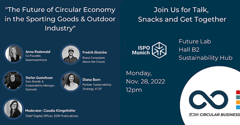 Are you visiting ISPO Munich this year? Then mark 12 pm on Tuesday in your calendars, as we are proud to be hosting our EDM Expert Talk, along with drinks and snacks, at the Future Lab’s Sustainability Hub (Hall B2).