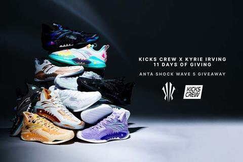 Irving has decided to launch its annual 11 Days Of Giving initiative with Kicks Crew to celebrate the partnership and investment. Irving and Kicks Crew will give away 111 pairs of the Anta Shock Wave 5 – the shoe Irving started the new NBA season with – from Dec. 11-15. The entire Anta Shock Wave 5 collection is now available at Kicks Crew.