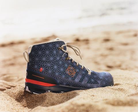 Spanish fashion brand Loewe and On have launched a limited-edition capsule collection of footwear and apparel “for modern adventure.” Designed for urban and outdoor living, the collection includes Loewe editions of On’s Cloudventure and Cloudrock performance footwear for men and women. The shoes feature On’s Missiongrip rubber outsole and Speedboard midsole plate, as well as recycled polyester uppers, hand-pressed marbled outsoles, brass eyelets and a matte or iridescent mudguard. The shoes are accompanied by weather-adapted running pants, a moisture-wicking waterproof anorak, temperature-regulating performance T-shirts and a three-layer insulated unisex parka.