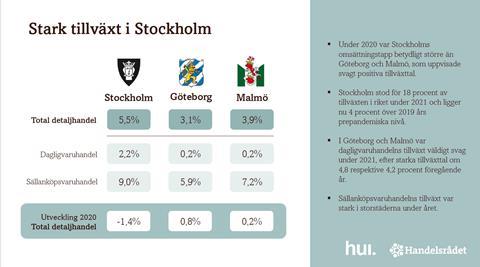 - Stockholm accounted for 18 percent of the country’s growth in 2021. Growth was 5.5 percent in Stockholm, while Gothenburg and Malmö saw slightly weaker growth. Stockholm was the only one of the major cities to have negative growth in the previous year.