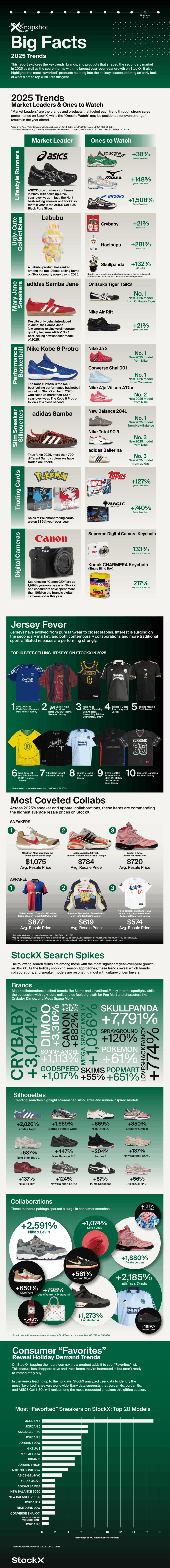 StockX has released its Big Facts: 2025 Trends report, revealing that running-silhouette sneakers jumped 45 percent year-over-year on its resale platform, while trading card sales soared 339 percent. The data point to stronger crossover between performance sportswear, lifestyle sneakers and culture-driven collecting.